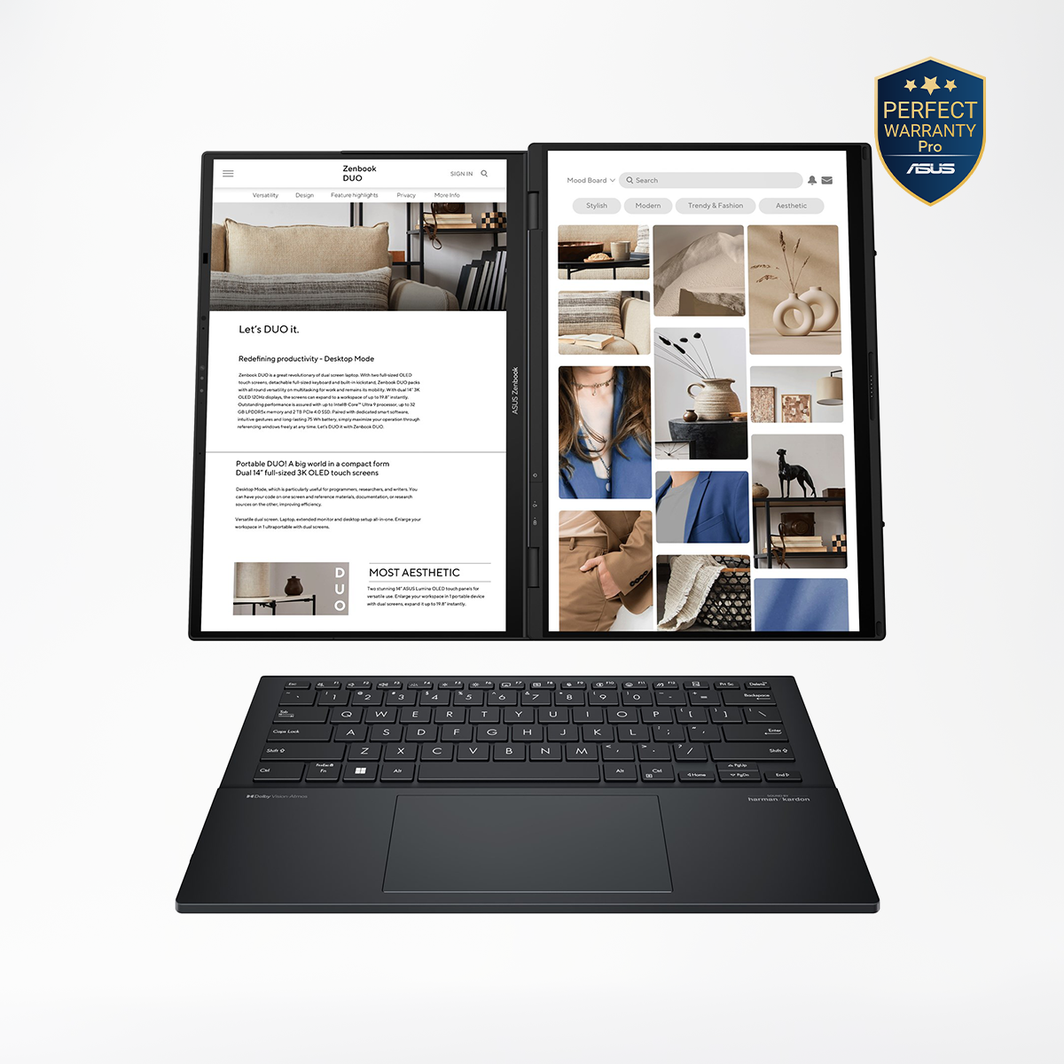 ASUS Zenbook DUO Intel Ultra 9 285H 16Cores, Intel Arc Graphics, 32GB LPDDR5X, 2TB M.2 NVMe, 14″ OLED 3K 120HZ, WIN 11 Home, 1 Year Perfect Warranty Pro