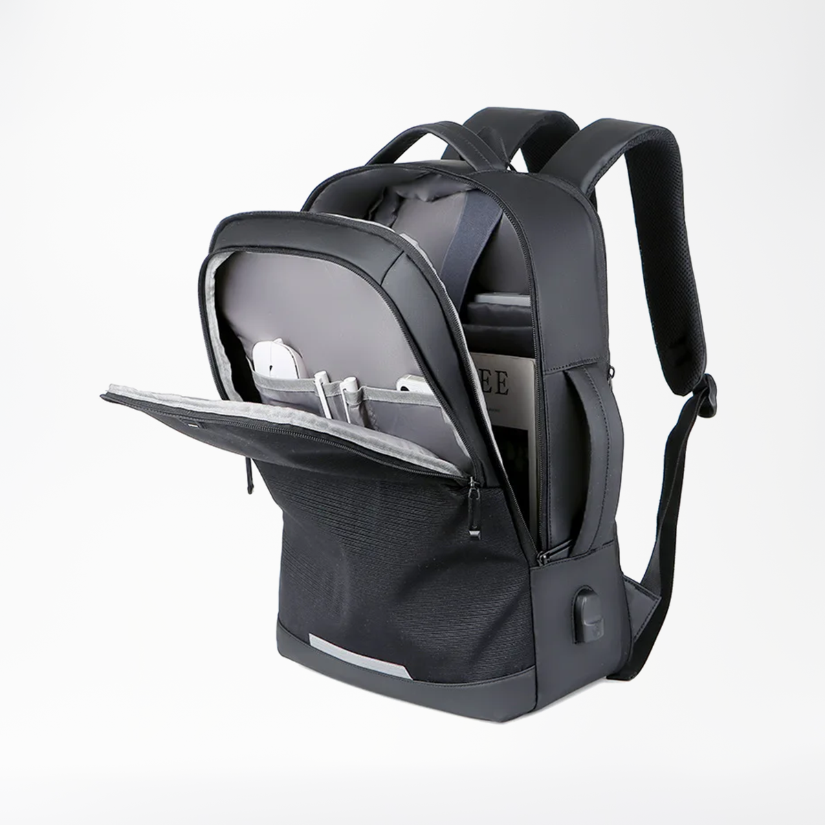 Meinaili 705 Backpack for 15.6″ laptop and Tablet suitable for Business, USB Backpack- Black